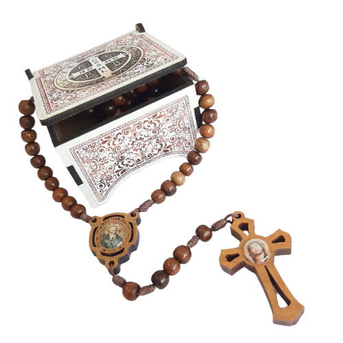 Selecction Premium TERÇO SÃO BENTO EM MADEIRA IMBUIA COM CAIXINHA EM MDF